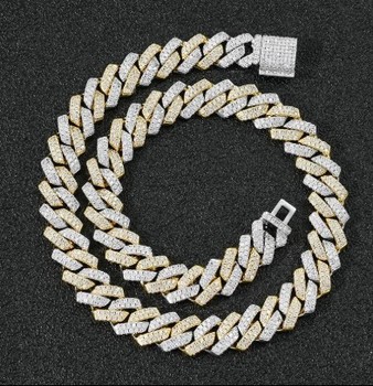 Collier en moissanite style hip hop personnalisé de luxe pour hommes 10K solide lien gourmette bicolore 8.2mm nouveau design