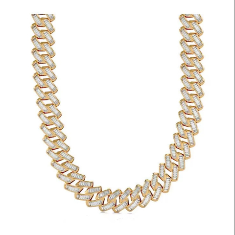 Luxo de Alta Qualidade Baguette Levantada Colar De Corrente Cubana Espumante Bling Levantou Diamantes Baguette-para Homens Presente De Casamento Das Mulheres